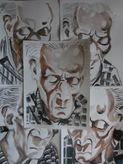 Physically, my father is robust: cognitively he is in decline. He doesn’t know my name, or our relationship, but the bond between us is strong. He seems to particularly enjoy our 6:00 am portrait painting sessions. You can’t see his eyes in any of my paintings because he is concentrating on the delicious breakfast I serve: hot cereal with apples and prunes, toast and juice.