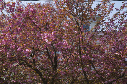 The trees have grown and put out a tremendous number of flowers.  They are now at their peak.  When you look down our block from Broadway you see a sea of pink.  In several weeks, the flowers will fall and create several inches of pink snow.