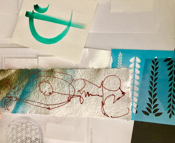 While teaching and taking on mural work, Mizrachi is busy at her studio at the Andrew Freeman Home in the Bronx, working on sketches, paintings, and assemblages. She continues to experiment with new forms, shapes, and materials to grow her practice. She is currently working on a series of rhythmic calligraphic line paintings and Paul Klee-esque facial portraits. In the spring of 2019, Mizrachi will open a solo show of her new works entitled Petroglyphs at the Andrew Freedman Home.