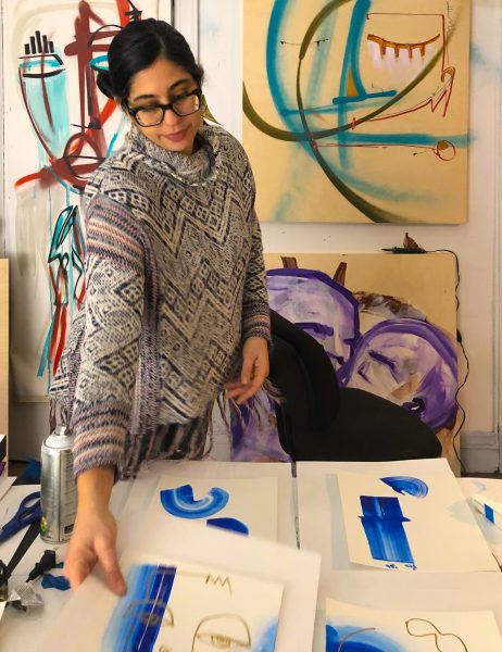 Mizrachi in her studio with a work entitled Divinity, which appeared in a 2018 show at McCaig Welles Gallery.