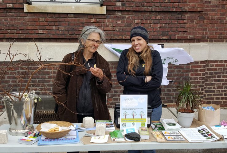 Nyack Sustainability Coordinator Marcy Denker (left) at the Nyack Tree Project Earth Fest table with Melissa Brey, who has been volunteering with the group for two years. “We just keep trying to beautify Nyack with our trees,” she said. Denker outlined the aim of the committee: “The NYACK TREE PROJECT is a community forestry initiative authorized and supported by the Village of Nyack. Funding is provided by the Village of Nyack and other sources, including private donations. It is organized by the Nyack Tree Committee. We plant trees along sidewalks in the public right of way. We also plant trees on private property near the sidewalk in our Free Front Yard Tree Program.” (Photo: Susan Hellauer)
