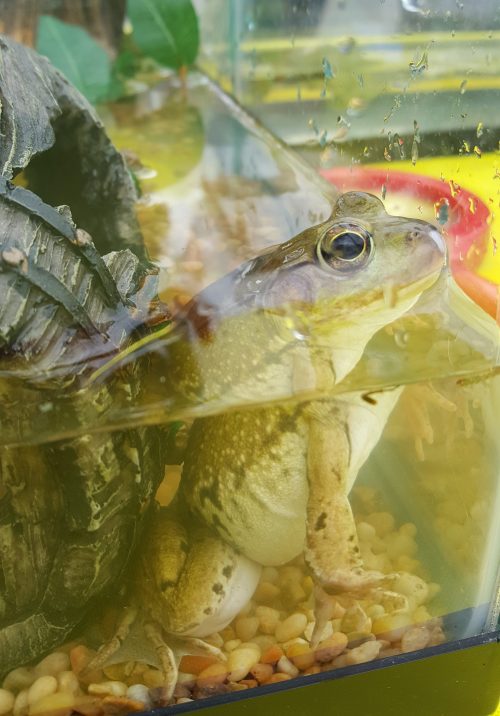 Earth Fest sponsor Blue Rock School Summer Play Camp set up a mini-play-camp as part of the day’s fun, with face painting, hula hoops, and local wildlife, including this little green frog, unperturbed by they day’s grey skies and gusty winds. (Photo: Susan Hellauer)