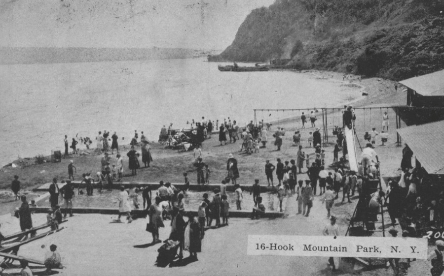 The beach, like many parks of the era, was segregated. Black visitors were confined to the area north of the docks. A walkway along the Hudson connected Hook Mountain Beach with Nyack and Haverstraw beaches and included restrooms and picnic spots.