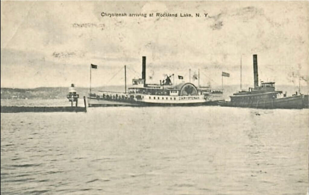Nyack’s famous steamboat passenger liner, the Chrystenah, docking at Rockland Landing. Notice the lighthouse in the background and the tug helping the steamer dock. Circa 1890. Courtesy of the Nyack Library.