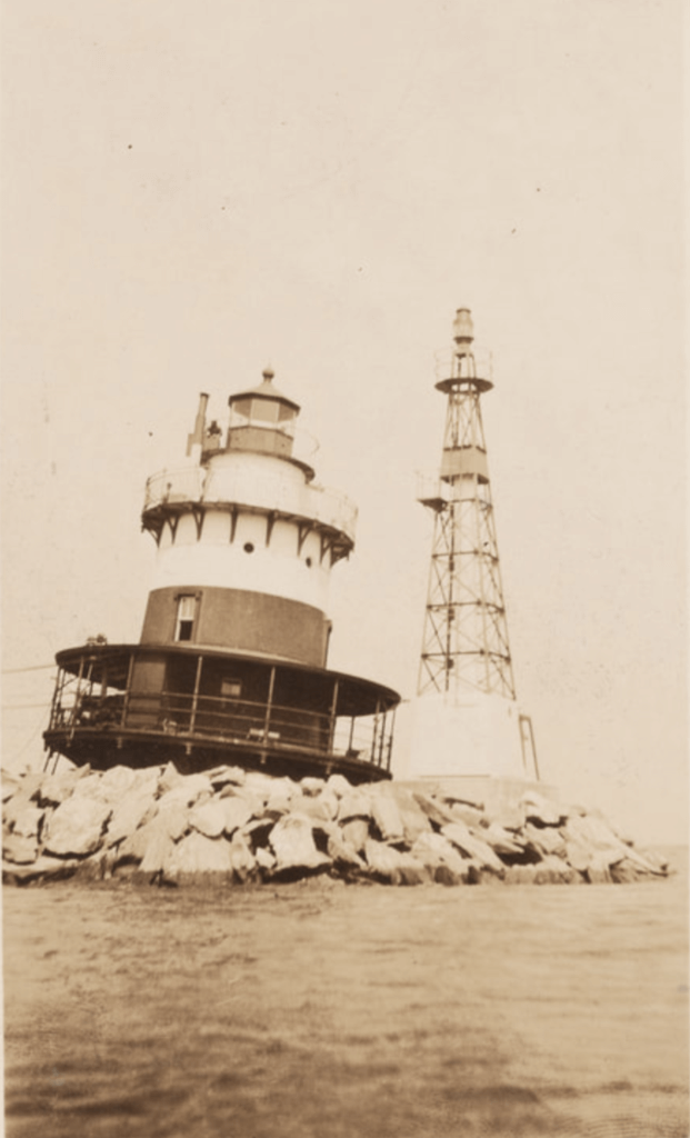 Although Congress authorized the lighthouse in 1889, workers didn’t begin construction until 1892. By 1894, they had completed a new lighthouse modeled on Tarrytown Light, positioned above the oyster bed. Crews drove its caisson 30 feet into the sediment, and the 50-foot tower rose with seven floors, topped by a fourth-order Fresnel lens.