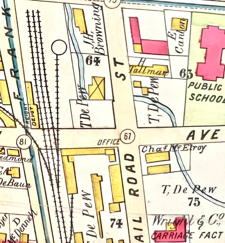 Soon after the war, McElroy began learning the carpentry trade from James C. Wool, a well-established builder in Nyack. Wool had previously teamed up with Isaac Vervalen to build many of Nyack’s early homes before the Civil War. In 1875, McElroy opened his own carpentry shop on land owned by Tunis Depew at the corner of Hudson and Railroad Avenues, near the Nyack train station. His shop remained there until 1909 when the land was acquired for the expansion of the Peerless Finishing Business.