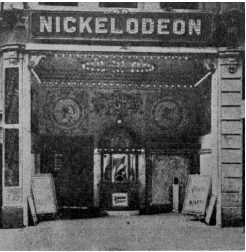 Exterior and interior of the first Nickelodeon in Pittsburgh.