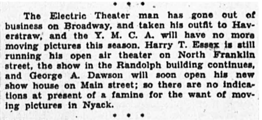 • June 1911: Lyceum Theater opens as Nyack’s first purpose-built movie house.