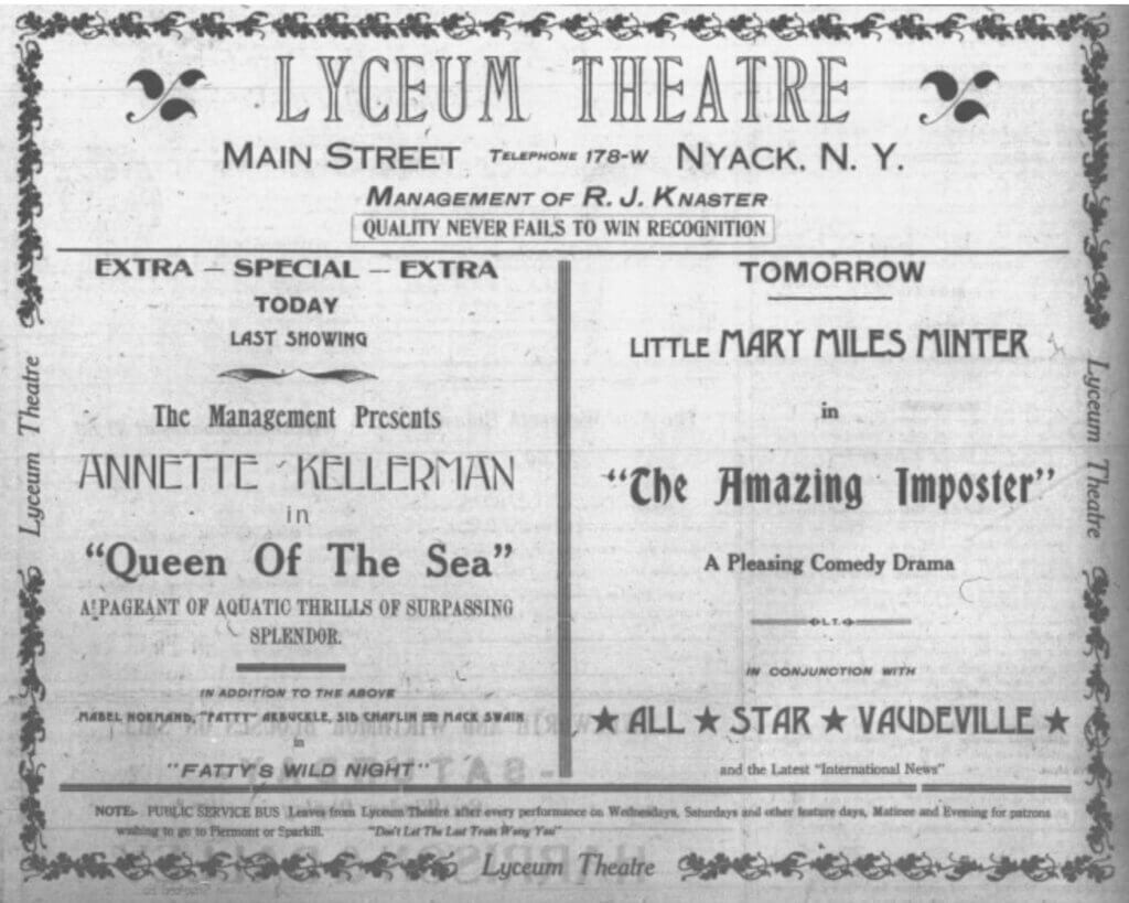 In 1919, the Lyceum even provided bus service to Piermont and Sparkill to compete for moviegoers: