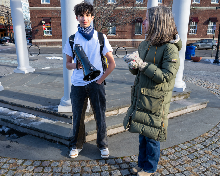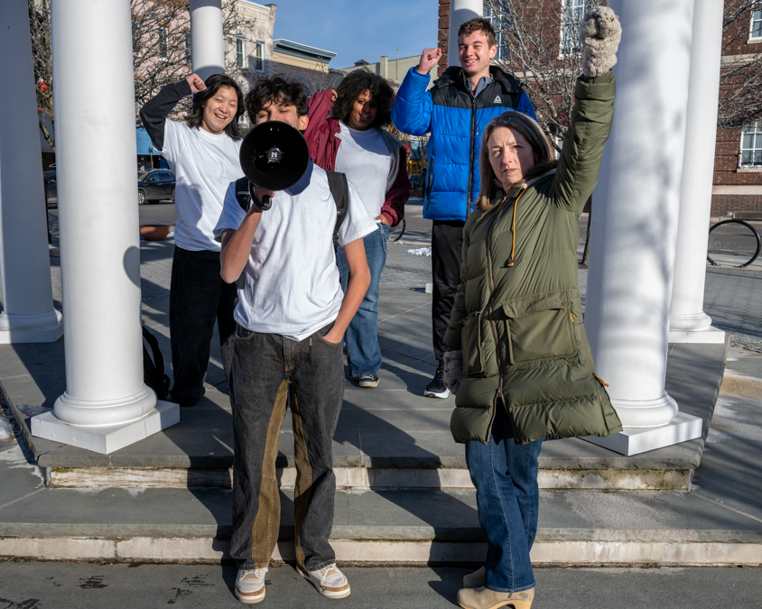 Students from Nyack high school protest the federal government’s deployment of ICE forces in Rockland County and beyond at Hezekiah Easter Veterans Memorial Park on Friday, January, 23, 2026. (Photo by Andrea Swenson; scroll to the bottom of this post for a complete slideshow of Andrea’s pictures from the event.)