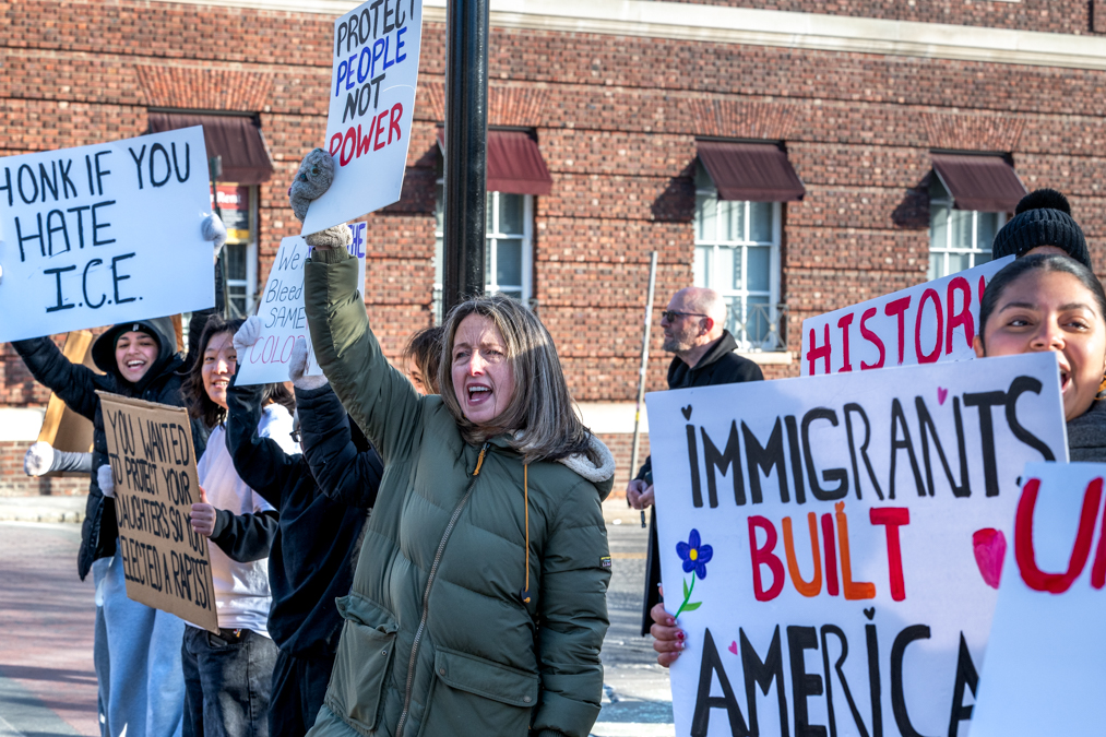 Rockland County legislator Beth Davidson, who represents Nyack, attended the anti-ICE rally in downtown Nyack on Friday, January 23. (Photo by Andrea Swenson)