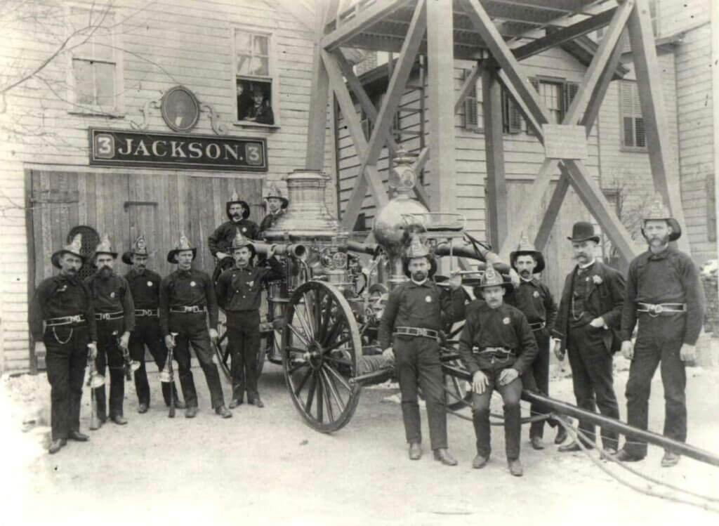 The Jackson Fire Company at their fire house on Jackson Avenue circa 1890s not far from the Van Houten stables. The tower on the right mounted fire alarms over the years including the mockingbird.The steam would be one of those fighting the Van Houten Livery fire. Courtesy of the Nyack Library.