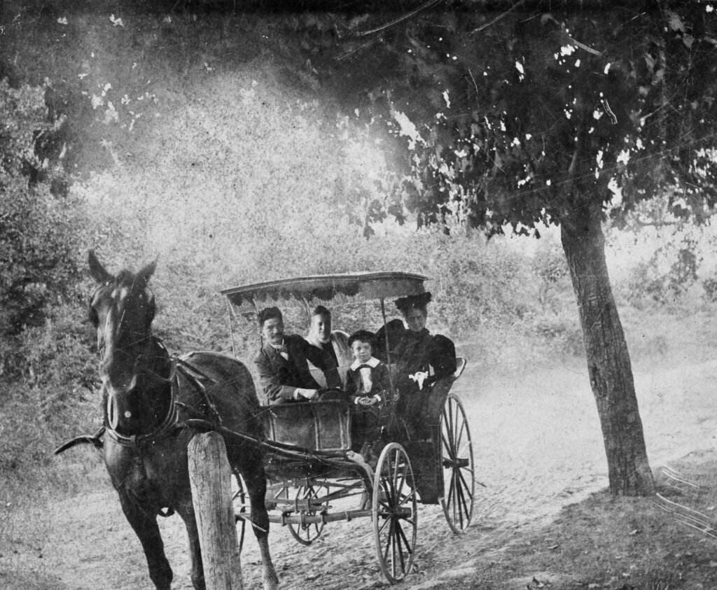Louis Klopsch, the founder of Mont Lawn, poses with his family in a surrey pulled by “old Molly” circa 1891. Courtesy of the Nyack Library.