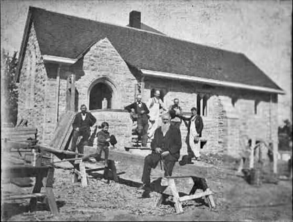 Bell Memorial Chapel under construction. Could Magee be one of the people shown at left?