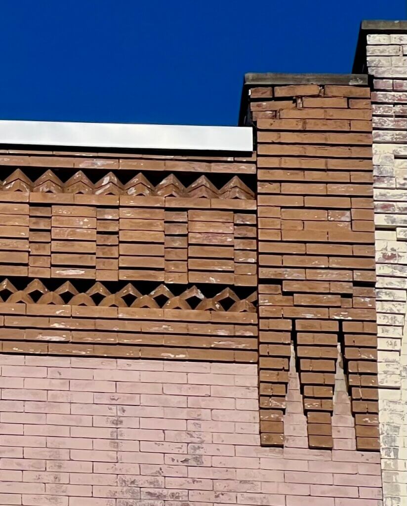 Contrast of Philadelphia brick on the front of this North Broadway building with the Haverstraw brick used on the sides.