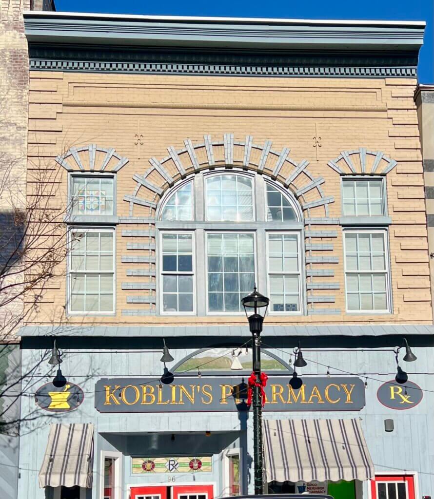 This combination still defines many buildings on Main Street and Broadway. Many storefronts are now painted. Some original brick cornices have been replaced with wood. Even so, the underlying Gilded Age aesthetic remains visible. Buildings such as the Harison & Dalley Department Store, Schmitt’s Ice Cream Parlor, and several Emery-designed commercial blocks clearly embody this approach.