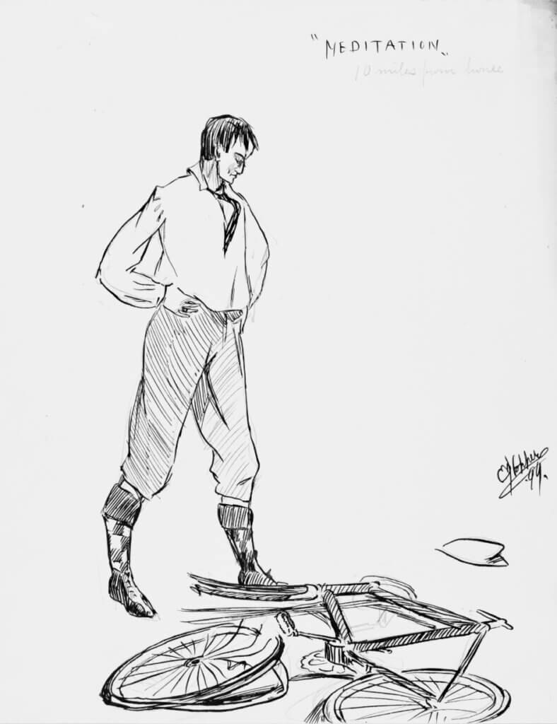 More telling, bicycles appear repeatedly in his early drawings. He sketched bike shops, racers, and riders moving. Cycling was not incidental. It formed part of his daily experience in Nyack.