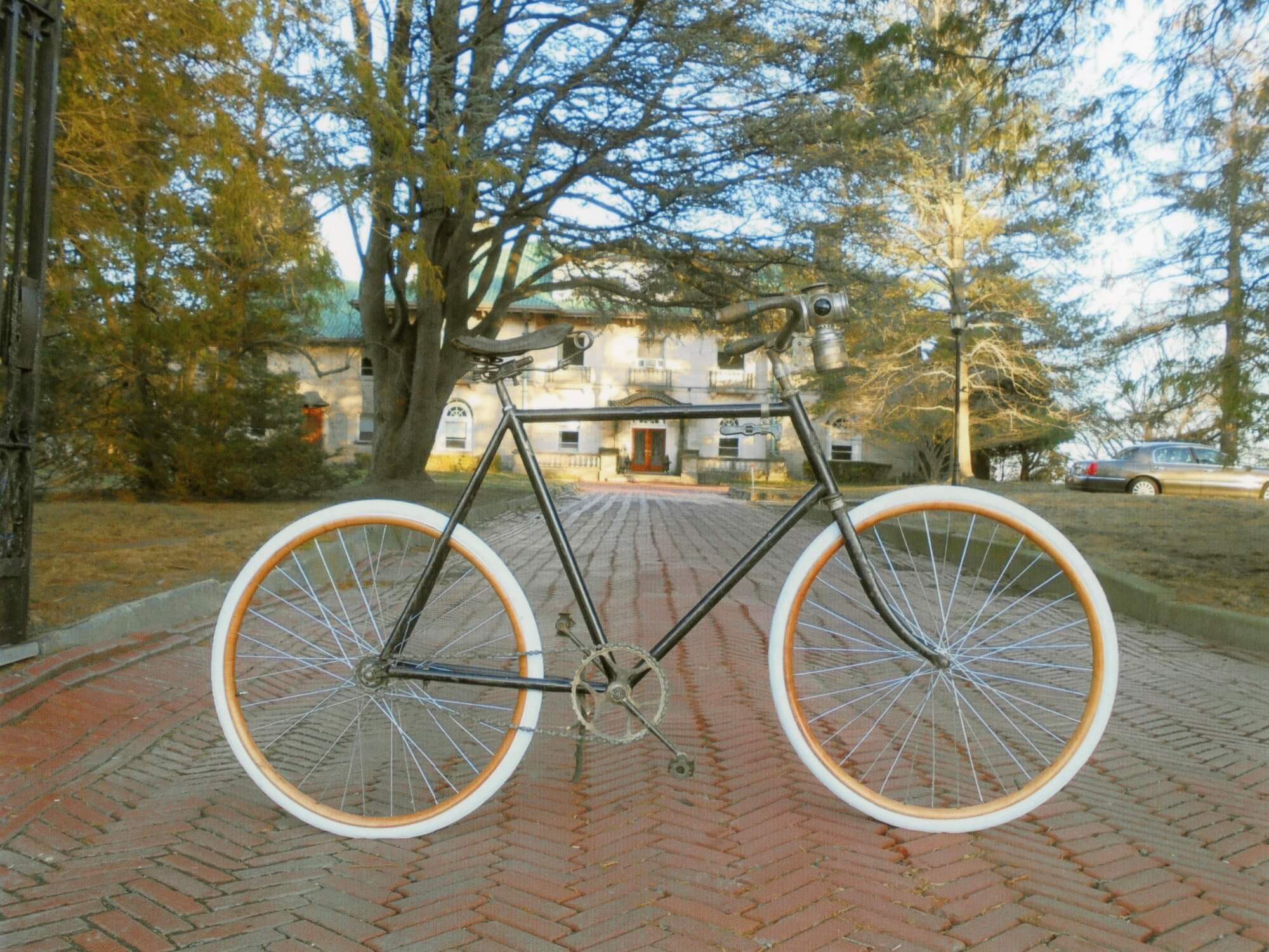 Photographed at the Foss House on North Broadway, this bicycle reflects the design and finish typical of late 19th-century safety bikes, with painted frame and refined detailing that signaled both utility and style. Courtesy of Michael Jamieson and the Nyack Library.