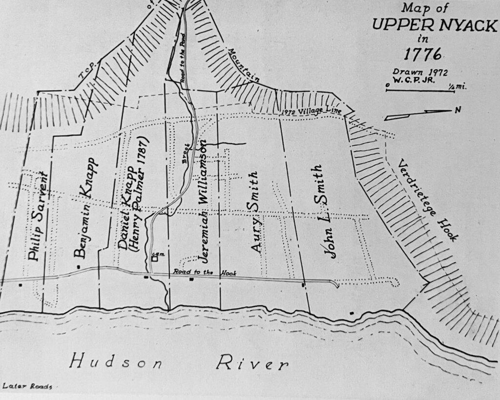Jeremiah Williamson assembled a farm of roughly 90 acres around 1750. The property extended from the Hudson River west to above present-day Route 9W, north of Upper Nyack Brook. It functioned as a working farm sustained by enslaved labor, typical of larger holdings in colonial Rockland County.