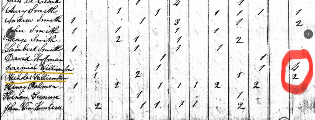 The Williamson household is recorded with six enslaved individuals, reflecting the extent of slavery in early Rockland County. Courtesy of the National Archives.