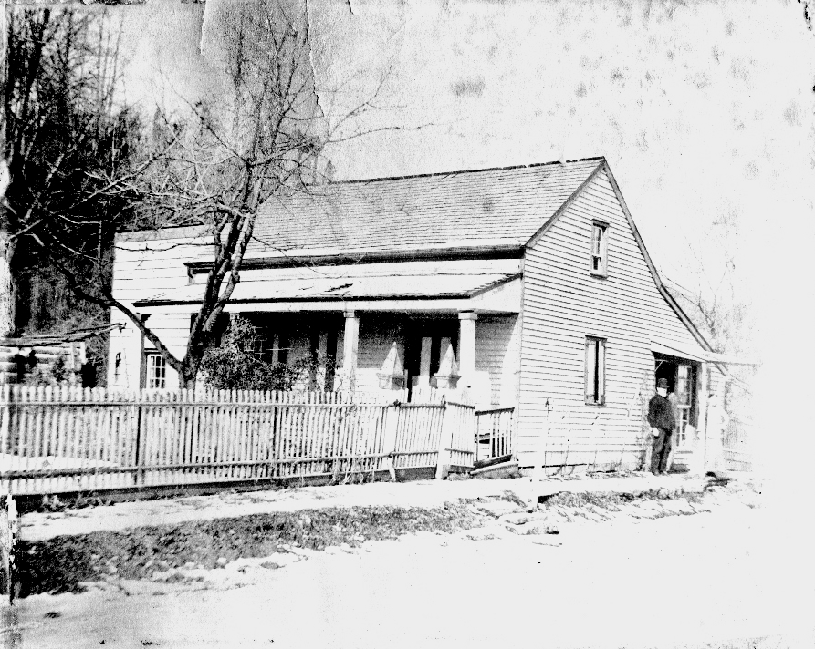 This structure has been associated with Peter and Emeline Williamson, though definitive documentation has not been established. The location is near the Old Stone Meeting House and may have been the site of their home and small store. Courtesy of the Nyack Library.